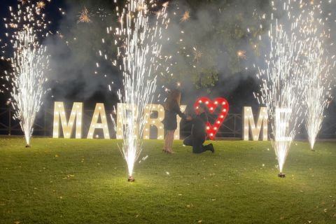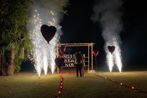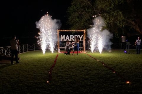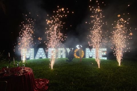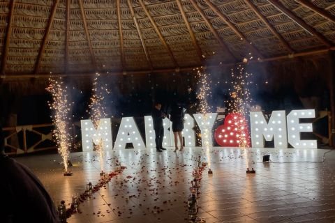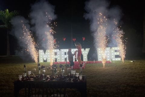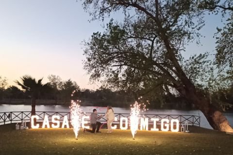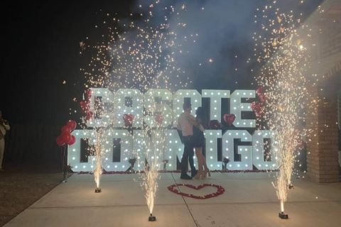 En Efectos Eventos, diseñamos propuestas de matrimonio personalizadas para que ese momento sea inolvidable. Desde escenarios románticos hasta efectos especiales como chisperos, humo y espectáculos en el cielo, nos aseguramos de crear la atmósfera perfecta.